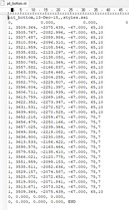 In pit design, engineers often need to adjust slope angles and berm widths based on rock stability. GEOVIA Surpac supports this by using values stored in the D-field of the pit design string file, with slope angles taken from D1 and berm widths from D2, enabling precise and flexible pit design.