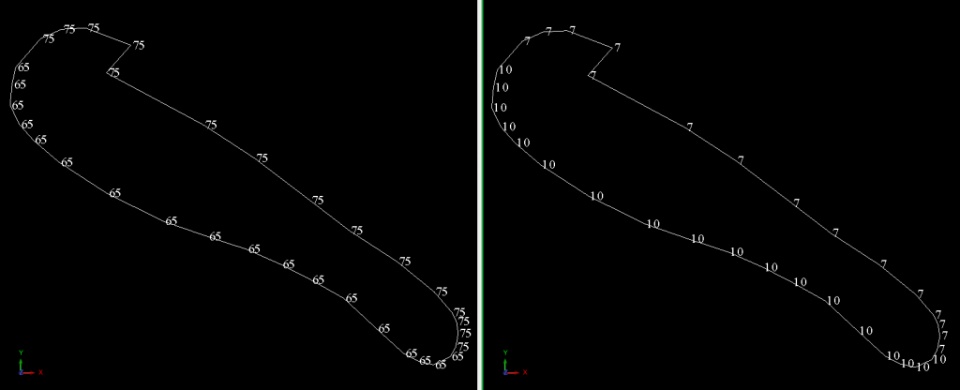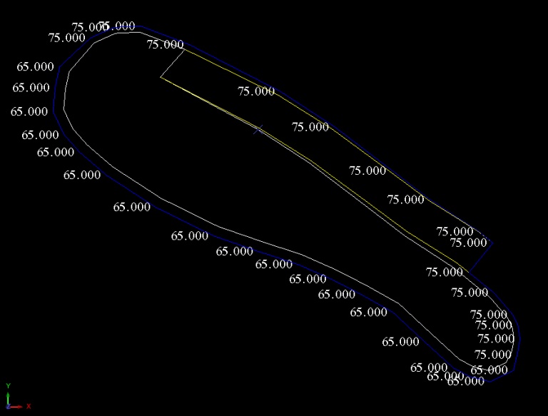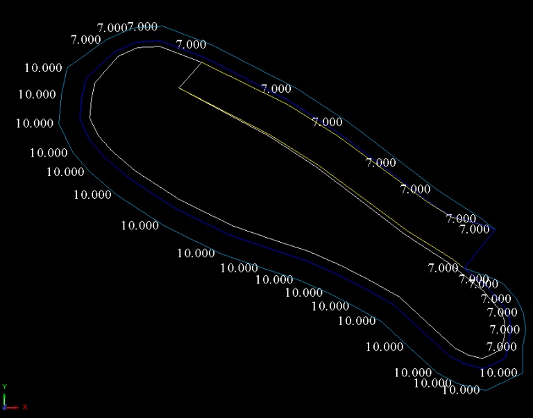 In the example below, the images show the pit bottom boundary with varying slope angle (in decimal degrees) & berm width stored in D1 & D2 field respectively: