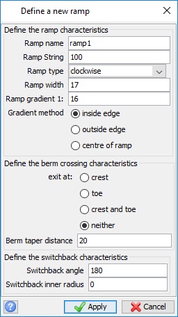 To define ramp properties, go to Design > Pit design > New ramp; then select the ramp starting points: