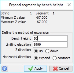 Next to expand the bench, go to Design > Expand segment > By bench height, and select the pit bottom segment; then go to Design > Pit design > Display slope angle: