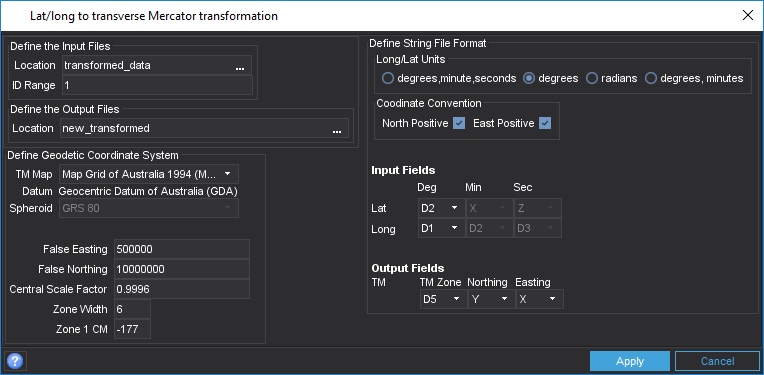 Transform the Latitude and Longitude into MGA values.