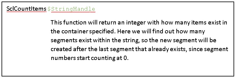 The syntax here follows the same as SclCreateSegment and we can also use SclCountItems here too.
