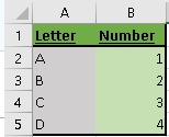 The original data from the spreadsheet was a simple table with 5 rows and 2 columns