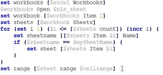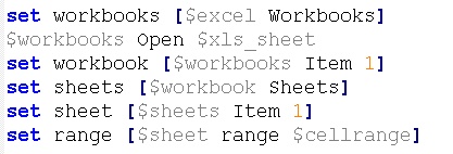 Also, this chunk of code fits very well inside of a TCL procedure which would keep the body of your macro neat and tidy and all you need to pass to the procedure is the file name and range, and it will return the list of values from the spreadsheet.